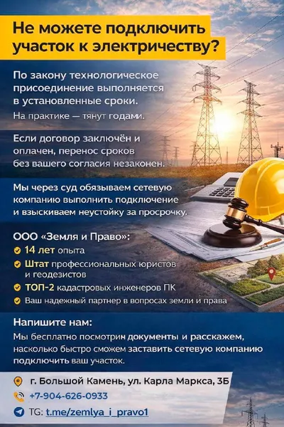 Не можете подключить участок к электричеству? По закону технологическое присоединение выполняется в установленные сроки. На практике — тянут годами. Если договор заключён и оплачен, перенос сроков бе
