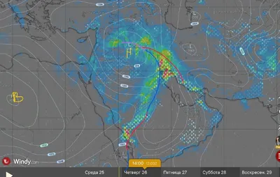 Завтра нахлобучит Ближний Восток. Windy пишет: На ОАЭ обрушились опасные штормы, приносящие проливные дожди, внезапные наводнения, сильные ветры и град. Наиболее суровые условия ожидаются в четверг дн
