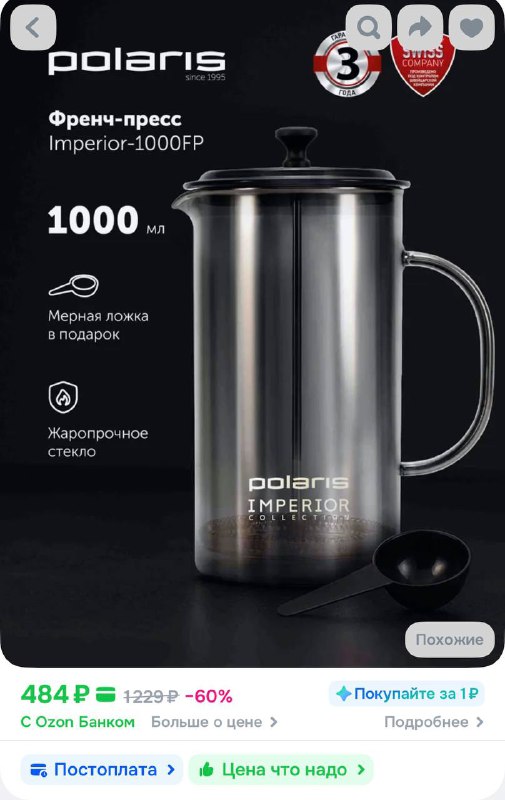 🚙 Френч-пресс 1000 мл Polaris https://ozon.ru/t/VaU3rAU