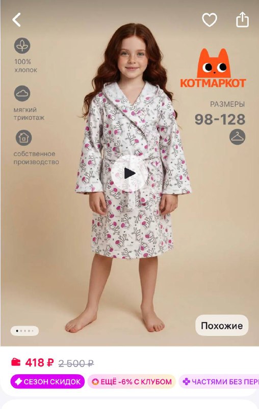 КотМарКот Халат детский с капюшоном https://www.wildberries.ru/catalog/809400928/detail.aspx