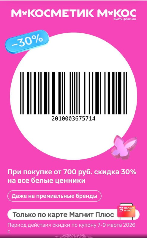 ‼️ТОЛЬКО 3 дня! КУПОН В М.Косметик и М.Кос! Скидка 30% от 700 руб. на все товары в чеке с белыми ценниками! 👇🏻 Сохраняй этот КУПОН https://gtblg.ru/vANFp?erid=2SDnjdTs9JZ и показывай его на кассе!