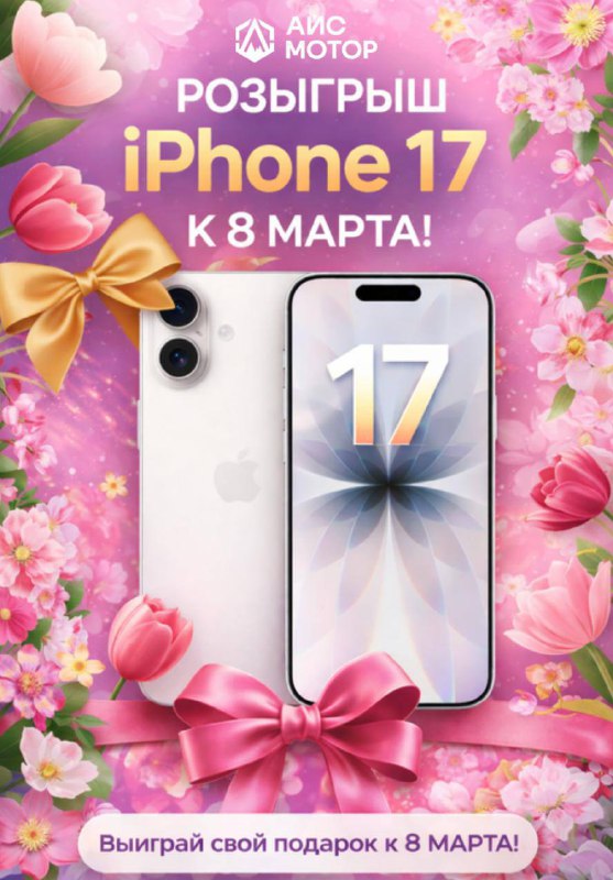 🔥САМЫЙ ВЕСЕННИЙ РОЗЫГРЫШ ОТ АЙС МОТОР ✨Дарим iPhone 17 к Международному женскому дню! Отличный повод порадовать себя или сделать подарок близкому человеку. ✅Приз: НОВЫЙ iPhone 17 ✅Розыгрыш состои