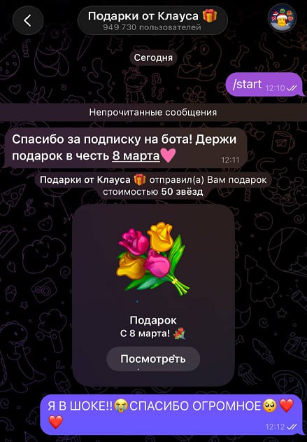 Ты получил(-а) подарок в честь 8 марта! 💐