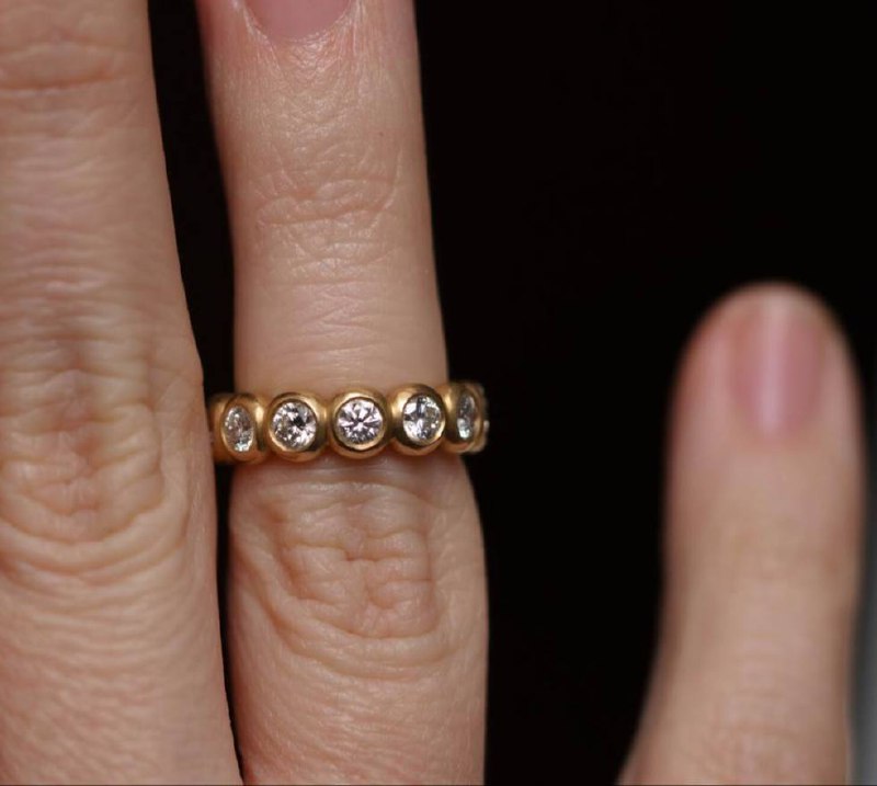 Если вам давно хотелось солидную бриллиантовую дорожку, а «как у всех» не хотелось… Понимаете ли, ставить бриллианты в матовые золотые бусины — долго, дорого, сложно. Мне всегда такие истории греют