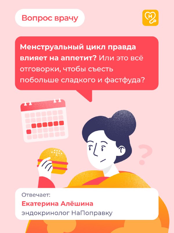 🍩Менструальный цикл правда влияет на аппетит? Отвечает эндокринолог Екатерина Алёшина: Да, менструальный цикл действительно оказывает влияние на аппетит. Так что это не совсем «отговорки». Но дав