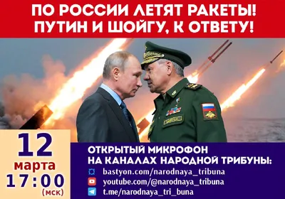 ⚡️ По России летят ракеты! Путин и Шойгу, к ответу! Сегодня на канале Народной Трибуны состоится трансляция Открытого Микрофона «По России летят ракеты! Путин и Шойгу, к ответу!». Сейчас в нашей стра