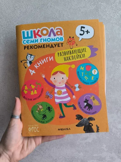 Купила в фикс прайс 4 книги семи гномов на 5 лет - готовлюсь уже к летним занятиям Внутри наклейки, задания, которые развивают ключевые навыки, разбиты по темам: грамота, математика, логика, окружаю