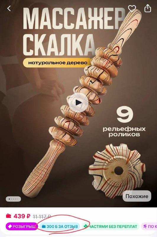 +300 баллов вернут за отзыв 1б=1р , смотрите чтобы на момент заказа горела плашка Ручной массажер скалка для самомассажа https://www.wildberries.ru/catalog/316201146/detail.aspx?size=477003295