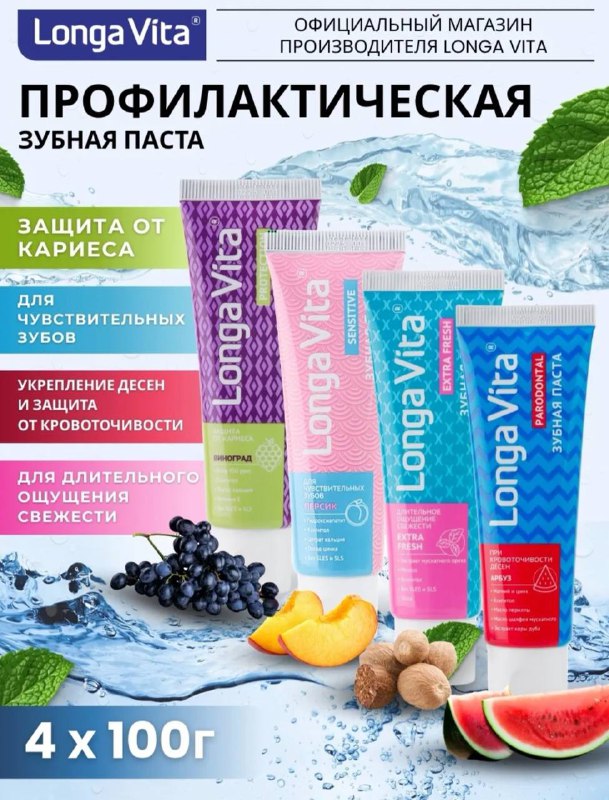 Зубная паста для чувствительных зубов 4шт https://www.wildberries.ru/catalog/466953764/detail.aspx?size=656351686 Предназначена для надежной защиты от кариеса с фторидом натрия и лактатом кальция.