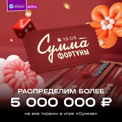 💫 А если именно сегодня удача решит сыграть на вашей стороне? В лотерее «Сумма Фортуны» сегодня распределительный день. Более 5 000 000 рублей разлетятся на все тиражи в игре «Сумма»! Проверьте свою