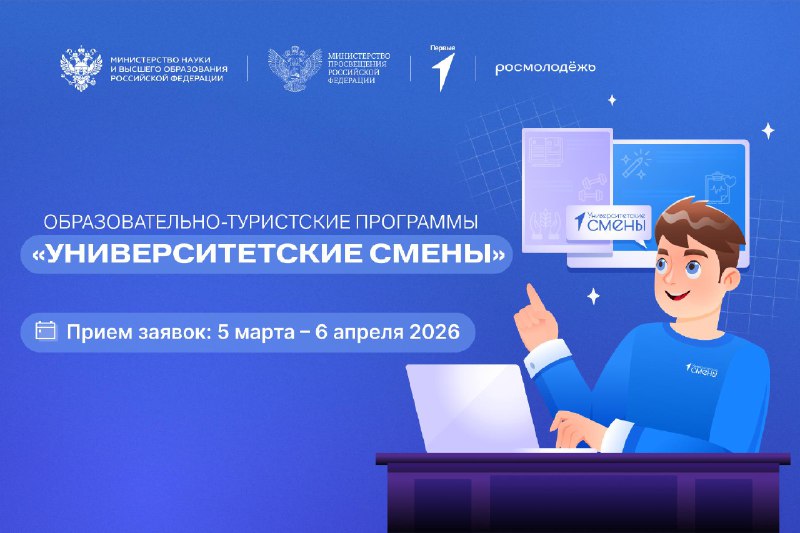 🧑🎓 Дан старт заявочной кампании на конкурсный отбор образовательно-туристких программ «Университетские смены» Университетские смены — это масштабный профориентационный проект Движения Первых, учас