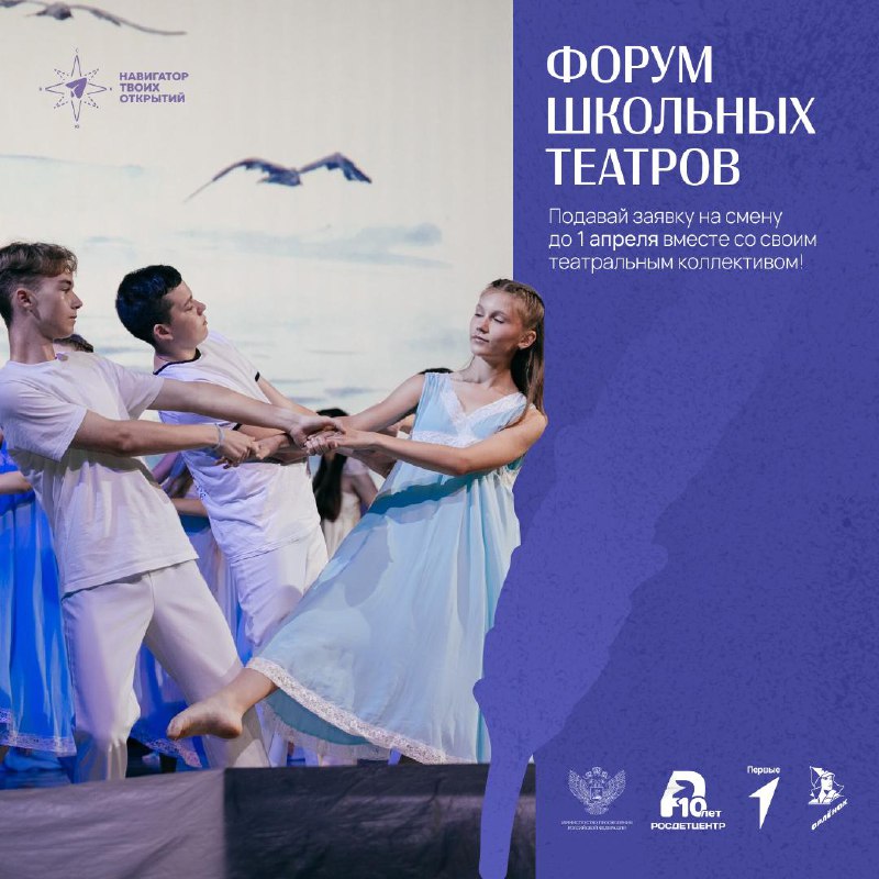 Весь мир — театр, а люди в нём подают заявки на «Форум школьных театров» 🎭 Участвуй в конкурсном отборе и выигрывай путёвку в «Орлёнок». Встречаемся с 30 мая по 19 июня на берегу Чёрного моря с теа