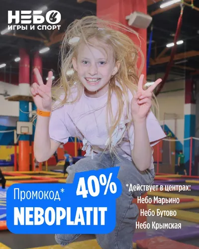 Не могли оставить вас без классного промокода на эти выходные, поэтому ловите 🎟🎟🎟 При покупке входных билетов в наши центры вводите: NEBOPLATIT 🔵промокод действует до 27 марта 🔵сумма скидки —
