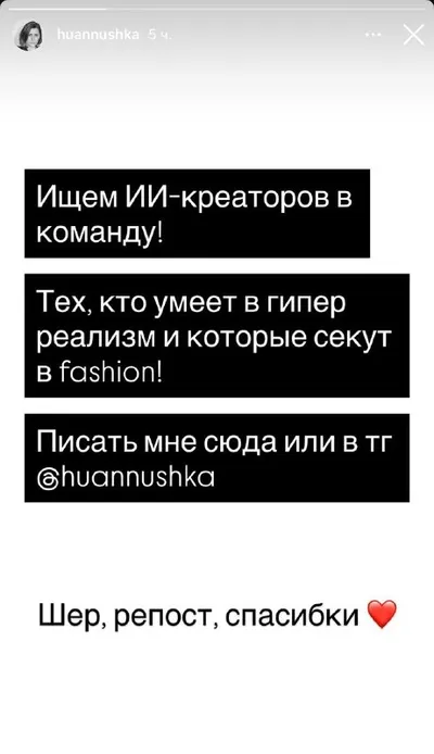 Аня ищет классных ИИ креаторов, пишите ей не стесняйтесь