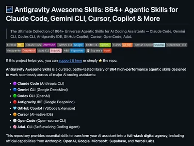 Забираем огромную библиотеку из 860+ готовых навыков для ИИ-агентов — с их помощью можно почти полностью автоматизировать работу и обучить агента чему угодно. Что внутри: • В одном месте собраны навы