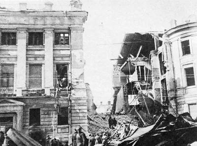 «Разорванный» дом в Москве. Построен в 1882 г. В 1941 году,во время войны, в здание попала бомба. Часть дома при взрыве сильно пострадала. После войны разрушенную часть строения восстанавливать н