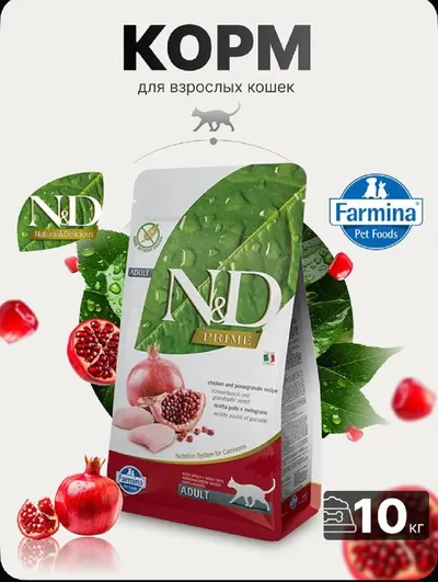 Farmina N&D Prime Adult, Chicken&Pomegranate, сухой беззерновой корм для взрослых кошек, курица и гранат, 10 кг Цена:7500₽ ‼️‼️НОВЫЙ‼️ Некондиционные(с незначительными дефектами) товары со значител