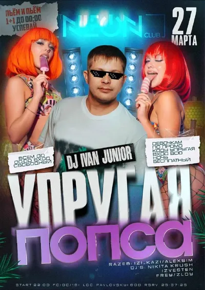 👋👋👋👋👋👋👋 ❗️ В ЭТИ ВЫХОДНЫЕ ❗️ NEON CLUB ⚡️ 27 и 28 МАРТА ⚠️ПЯТНИЦА 🍑УПРУГАЯ ПОПСА 🆓ВСЕМ ДО 00:00 ВХОД СВОБОДНЫЙ 🆓ДЕВОЧКАМ ВСЮ НОЧЬ ВХОД БЕСПЛАТНЫЙ ПО ПРОМО-КОДУ "УПРУГАЯ" 💥СУББОТА 😱