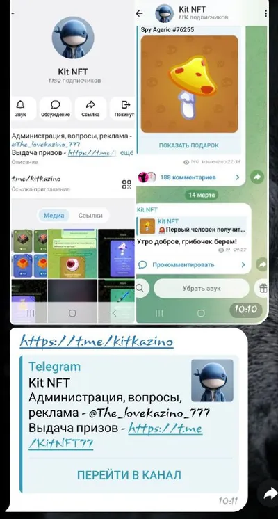 Напоминаю КИТ НФТ это СКАМ лудка... (этот скам и доки мы публиковали 9.03 в 18.51 на стене канала). Вот их ссылка https://t.me/kitkazino