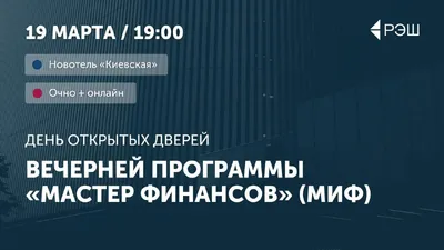 День открытых дверей программ «Мастер финансов» и Мини-МИФ РЭШ — уже в этот четверг! 19 марта в 19:00 в зале «Экспресс махараджей» Новотеля на Киевской, а также онлайн состоится «Вечер в гостях у МИ