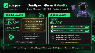 🔝 Buidlpad: Фаза 4 Vaults - условия, ставки и таймлайн 🟡 31 марта на Buidlpad стартует 4-я фаза Vaults В этот раз команда добавила разделение на два типа хранилищ: Flexible с плавающей ставкой и