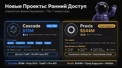 🔝 Cascade и Praxis: 2 новых проекта на ранней стадии Сегодня в фокусе два крупных проекта с серьезным финансированием, которые открыли ранний доступ для сообщества Один проект - это ставка на связк