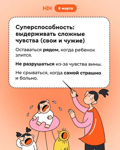 Мы часто говорим: «Мамы — просто живые люди, а не супергероини». И это, конечно, правда, но большая ошибка думать, что у вас нет суперспособностей. Просто эти способности выглядят буднично: выдержива