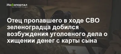 23-летний зеленоградец пропал без вести в ходе СВО спустя несколько недель после заключения контракта с Минобороны. Вскоре всплыла странная история с банковской картой, оформленной на его имя, на кото
