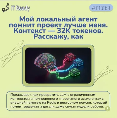 ☕️ Свежая и полезная статья на Хабре: «Мой локальный агент помнит проект лучше меня. Контекст — 32K токенов. Расскажу, как» В этой статье: • Разбирается, почему огромный контекст, не решение проблемы