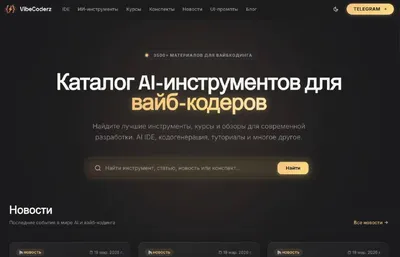 За 26 часов сделал портал с 6К+ материалов для вайб-кодеров vibecoderz.ru Всё в одном месте: 👉 2,336 AI-инструментов (возможно, крупнейший русскоязычный каталог, 182 категории) Киллер-фича: → 2