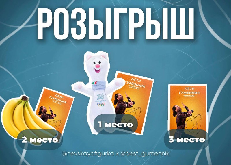ОЛИМПИЙСКИЙ РОЗЫГРЫШ В ЧЕСТЬ ОКОНЧАНИЯ СЕЗОНА 🩵 Дарим горностая Тину, 5 килограммов бананов и три автографа звезды Олимпийских игр — Петра Гуменника! Хотим поблагодарить вас за то, что провели этот