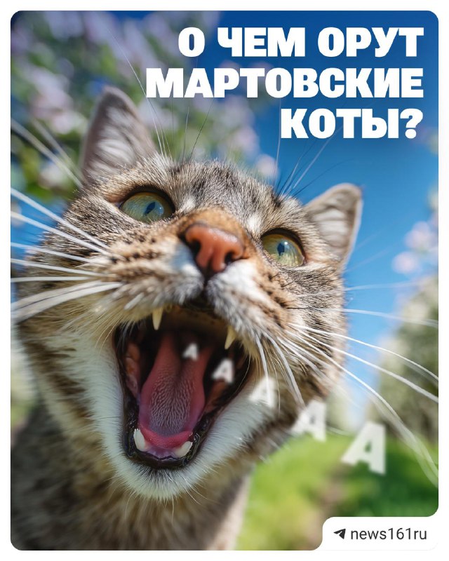 🤩 Весна официально пришла, и первыми это почувствовали мартовские коты. Но о чём они на самом деле так громко заявляют? Мы перевели кошачьи «серенады» на человеческий язык. Спойлер: иногда их настро