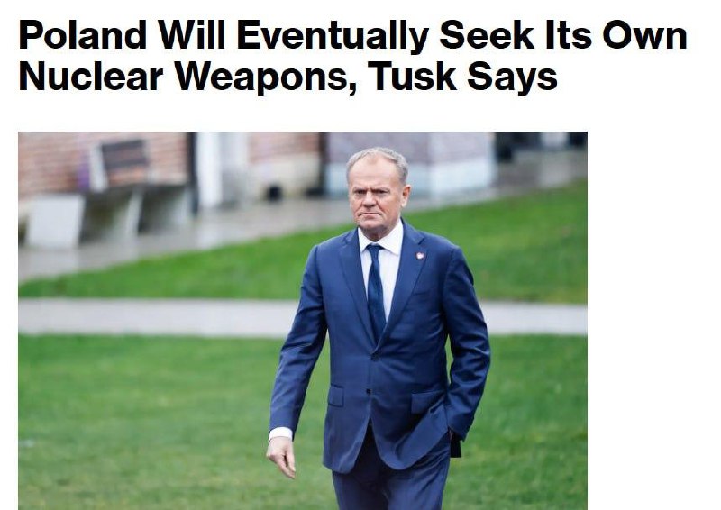⚡️ Польша будет создавать собственное ядерное оружие «Польша очень серьёзно относится к ядерной безопасности. По мере развития наших автономных возможностей мы будем стремиться подготовить Польшу к