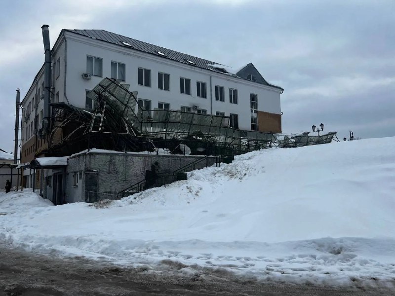 🚨 Снежный коллапс в Верее: обрушилась крыша рядом с администрацией. Инцидент произошёл в центре города. К счастью, обошлось без жертв. https://max.ru/nfsmionline/AZyuhF1heUQ