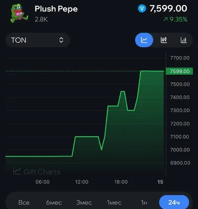 PLUSH PEPE - COMEBACK? Всего за сутки минимальная цена Plush Pepe выросла на +9,35% — с 6 800 до 7 600 Также заметно оживилась активность покупок: за день было совершено 10 покупок Plush Pepe 🎁