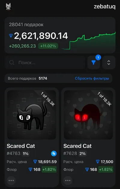 🐈⬛ Самая хайповая коллекция подарков на данный момент : Scared Cat - Памп редких моделей - Поддержка от 1337 club - Выбор топ холдеров и китов 💹 Благодаря стремительному росту коллекции кошек,