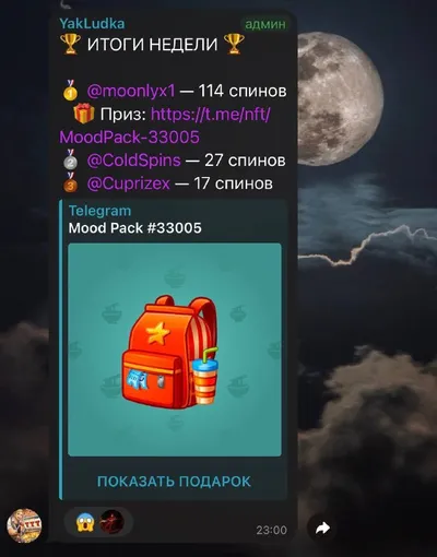 Неделя подошла к концу 🔥 @yakludka Следующее подведение итогов уже в это воскресенье ⏳ Крутите спины 🎰, боритесь за первое место 🏆 и забирайте свои NFT 🎁🚀 Не упустите шанс стать лучшими 💪✨