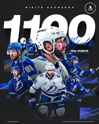 ⚡ Никита Кучеров добрался до отметки в 1100 очков в НХЛ В матче против «Детройта» Кучеров отметился двумя голевыми передачи и достиг отметки в 1100 очков (391+709) в 863 матчах! Кучеров стал четверт