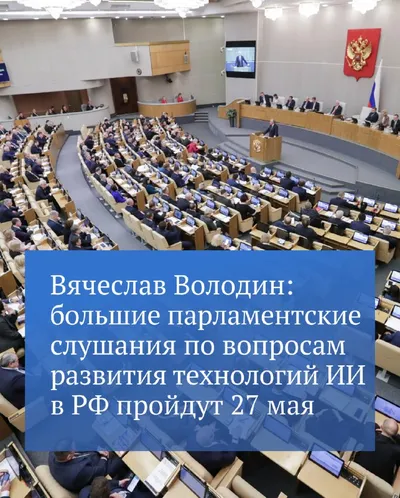По решению Совета Государственной Думы парламентские слушания по вопросам развития технологий искусственного интеллекта в России пройдут 27 мая, сообщил Председатель ГД Вячеслав Володин. К этому врем