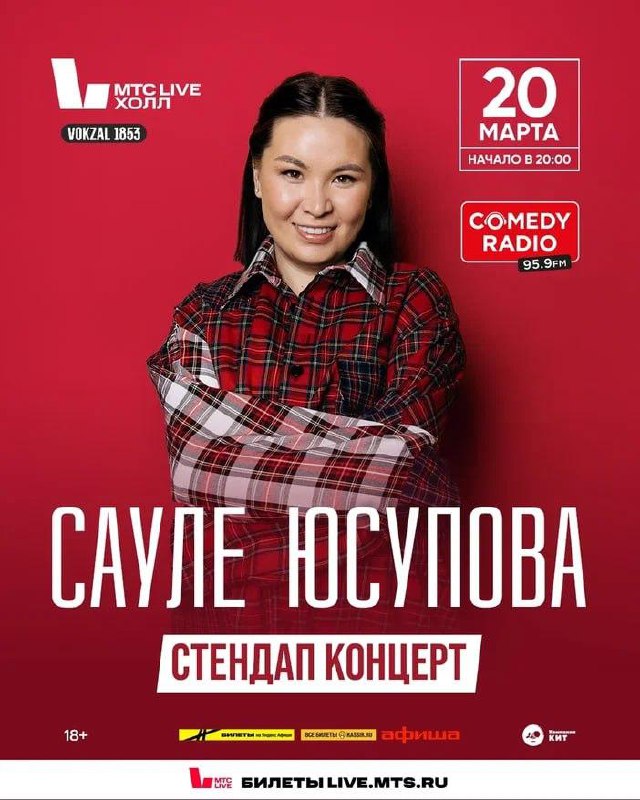 Локомотив юмора прибывает на Vokzal 1853, с сольным концертом Сауле Юсуповой. Просьба всех приготовиться надрывать билетики и животики! 🙃 Стены МТС Live Холл примут Сауле — сценариста, стендап-комик