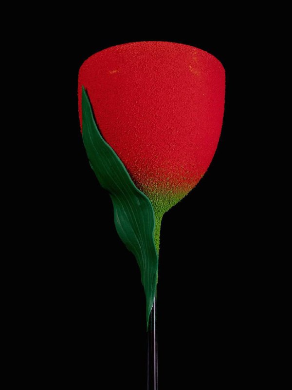 Тюльпаны можно попробовать на вкус. Для этих конфет в White Rabbit Владимир Мухин добавляет тюльпановую эссенцию, которую получает с помощью роторного испарителя. Внутри шоколадных бутонов – ревень, п