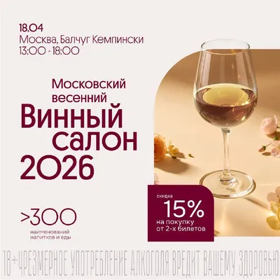 Друзья, 18 апреля в Москве в отеле «Балчуг Кемпински» состоится второй Весенний московский Винный салон🍷🍾 от Ароматного Мира. Вас ждут более 50 станций и более 300 наименований вин и крепких спирт