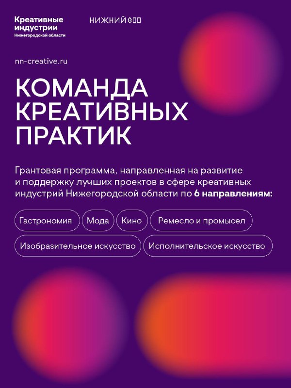 Получите грант на свой проект⭐️ Стартовала первая волна грантовой поддержки «Команды креативных практик» — проекта, направленного на развитие лучших инициатив в сфере креативных индустрий! 📎Подава