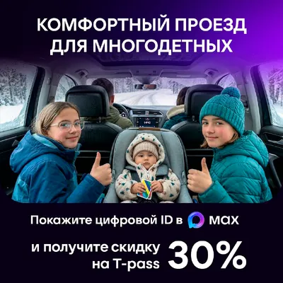 Выгодные поездки для многодетных с МАХ! Минтранс и «Автодор» запустили акцию «Комфортный проезд для многодетных семей»: до 30 сентября 2026 года можно купить транспондер T‑pass со скидкой 30%. При п