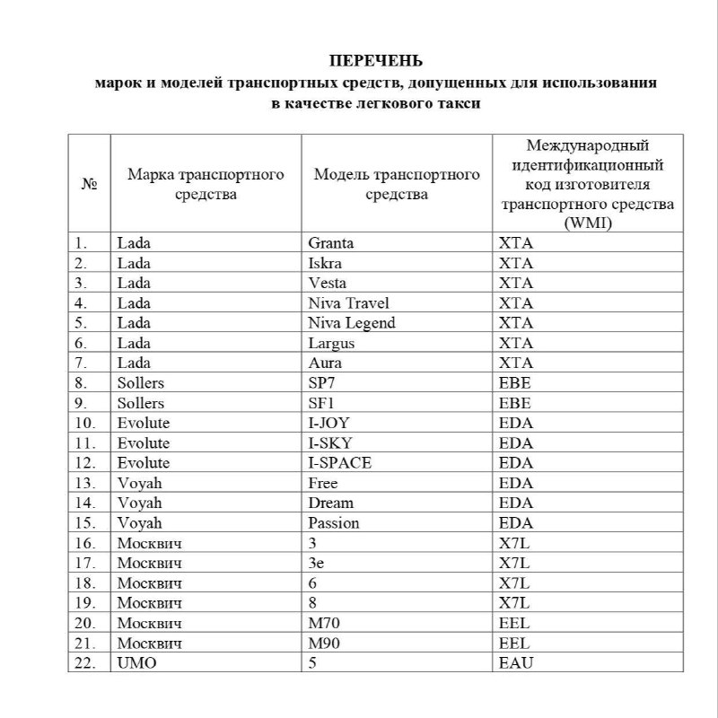 🚖 Минпромторг РФ опубликовал «белый список» автомобилей для такси. В перечень уже вошли допущенные к работе модели, а в ближайшее время планируется расширение: добавят Haval Jolion, Haval F7, Haval