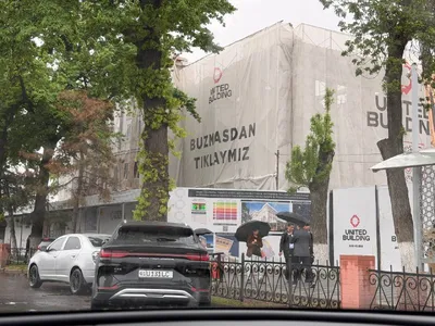 Классная коммуникация на фасаде реконструируемого объекта. Сразу отвечает на страхи горожан, и как бы заявляет претензию на тренд сохранения наследия. #ташкент #узбекистан #стройкаперестройка #комму