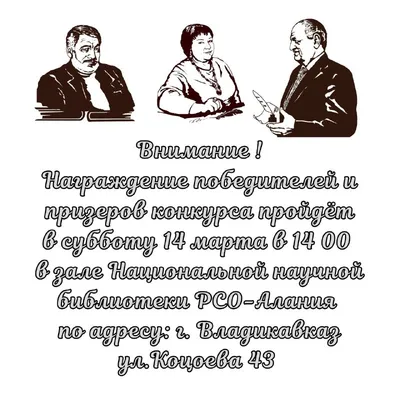 ❗️Внимание! Награждение победителей конкурса на лучшее чтение стихотворений осетинских поэтов - современников Дзасохты Музафера, Кокайты Тотрадза и Риты Бутаевой пройдёт 14 марта в 14 00 в зале Нацио