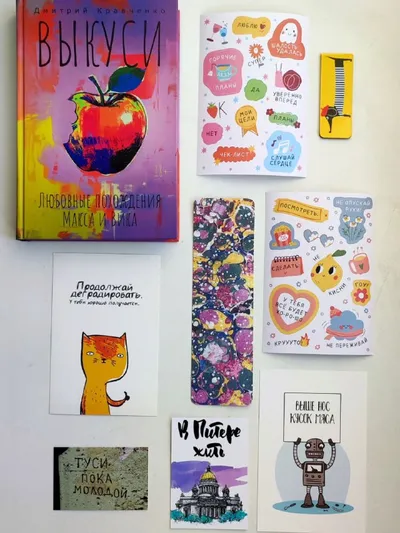 😆😀😍😎 😊🙃🥲😂🙃🤨☺️ 😌😀😊 Итак, время пришло! Вашему вниманию представляю: 🤓"Выкуси. Любовные похождения Макса и Вика" Дмитрий Кравченко 🤓2 листа стикеров 🤓2 закладки (бумажная и магнитная)