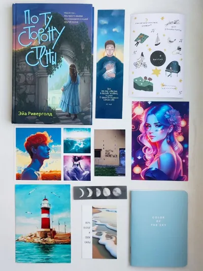 😆😀😍😎 😊🙃🥲😂🙃🤨☺️ 😌😀😊 Итак, время пришло! Вашему вниманию представляю: 🤓"По ту сторону стены" Эйа Риверголд 🤓1 лист стикеров 🤓1 закладка 🤓4 открытки 🤓мини-блокнот "Color of the sky"