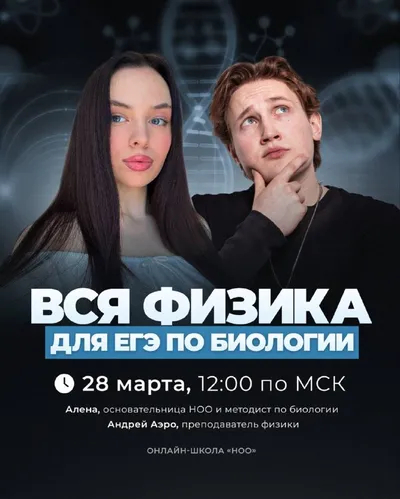 Новый стрим от ОШ с самым большим количеством 100-балльников по био уже через 2 дня! Встречаемся 28 марта [суббота] в 12:00 мск ❤️ Разберем все темы биологиии, где нужны элементы физики. Особенно по